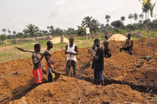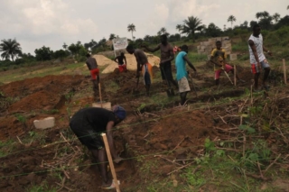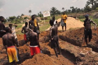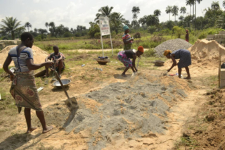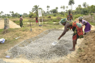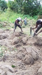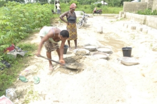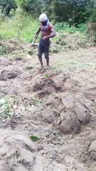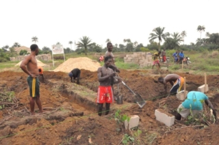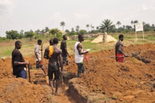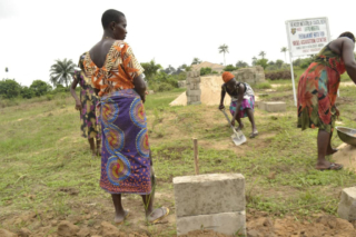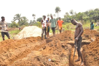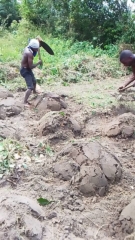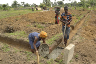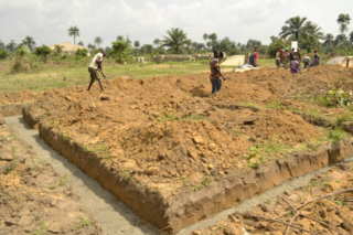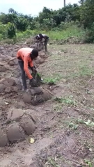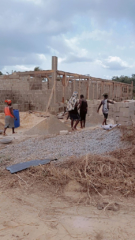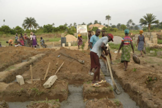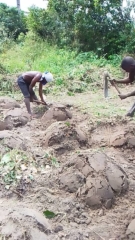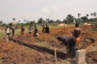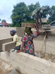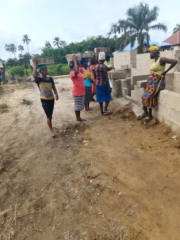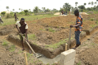 Le chantier démarre…les hommes creusent….nous sommes en décembre 2022. Les hommes qui sont venus pour faire ce travail viennent de tous les villages des alentours. Ils se renseignent auprès des autres chantiers proches de celui-ci. Les femmes sont pour la plupart des veuves et viennent des villages des alentours. Ces documents montrent l’engagement et le dévouement des communautés paysannes pour leur futur centre de formation.