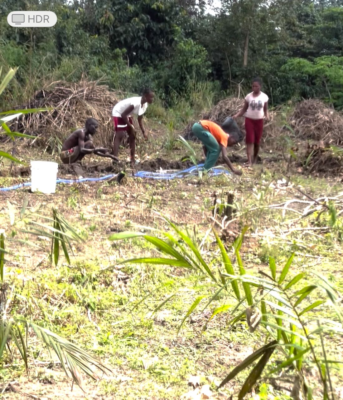 Sur le dernier site agricole où nous avons récemment planté des palmiers à huile et d’autres arbres, il n’y a actuellement pas d’eau, et la saison des pluies est terminée. Pour éviter de graves dommages aux jeunes plants, j’ai décidé de contacter la société d’eau pour forer un puits.